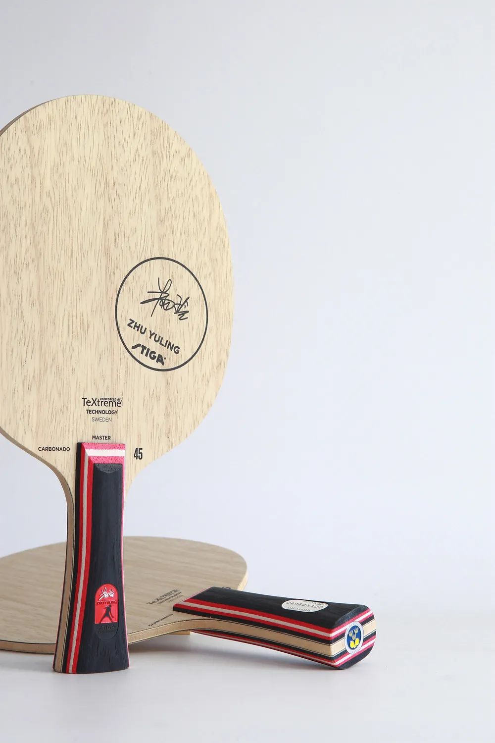 作为纯木球板的资深品牌,斯帝卡对于木材原料的采集与归纳都十分讲究,而如今的明星系列球板,便是“好钢用在刀刃上”的完美写照。由于红标45完全按照朱雨玲的个人极致需求打造,比如精确的重量标准、更快的脱板速度等,红标45严格甄选了靠近树木根部的木材,年代更久,木质也更硬。