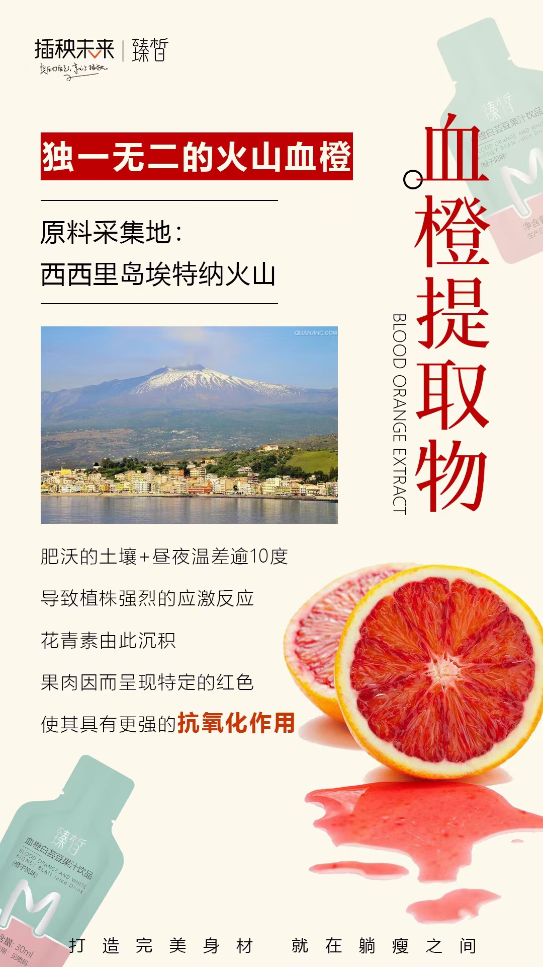 你的燃脂小马达:来自意大利西西里埃特拉火山的血橙提取物。