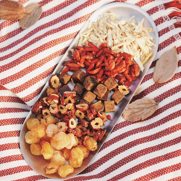 无聊的下午,干吃来解馋。嘎嘣脆的枣片,肉嘟嘟的桂圆,有嚼劲的枸杞,甜蜜蜜的红糖块,微微辣的姜丝。