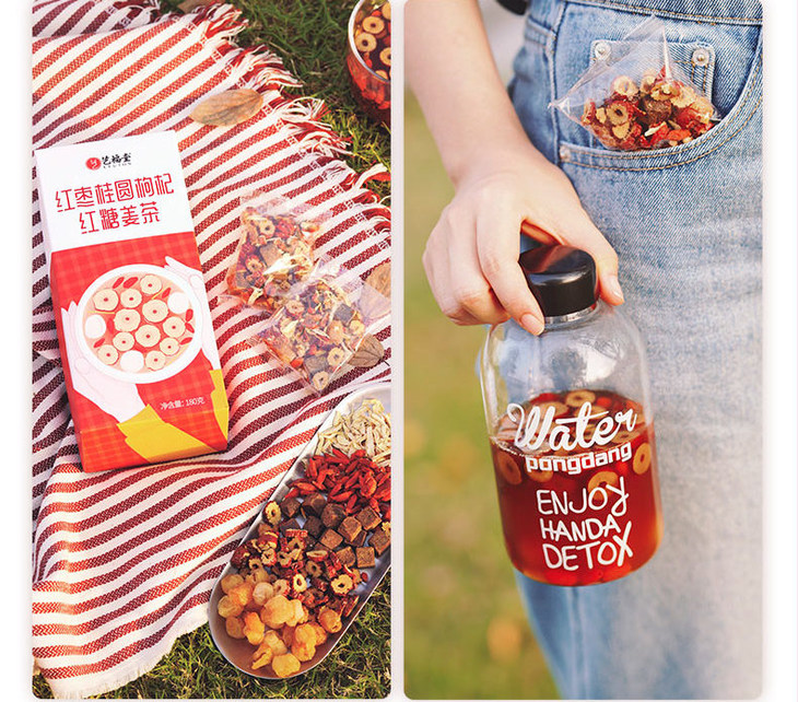 红枣、桂圆、枸杞,这3种天然元气食材,再配以广西出产,古法熬制而成的红糖块;辣味适中,山东莱芜的老姜丝。5重原料,呵护花容,帮助你告别寒凉,做精致女神!