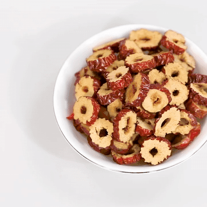 枣片选用新疆红枣,民间有“一日食仨枣,百岁不显老”之说,红枣中大量的维生素B可促进皮下血液循环,使面部皱纹平整,皮肤健美!经过去核及烘干工艺处理的红枣片,果型饱满、皮薄肉厚、枣香诱人、片片香脆可口!