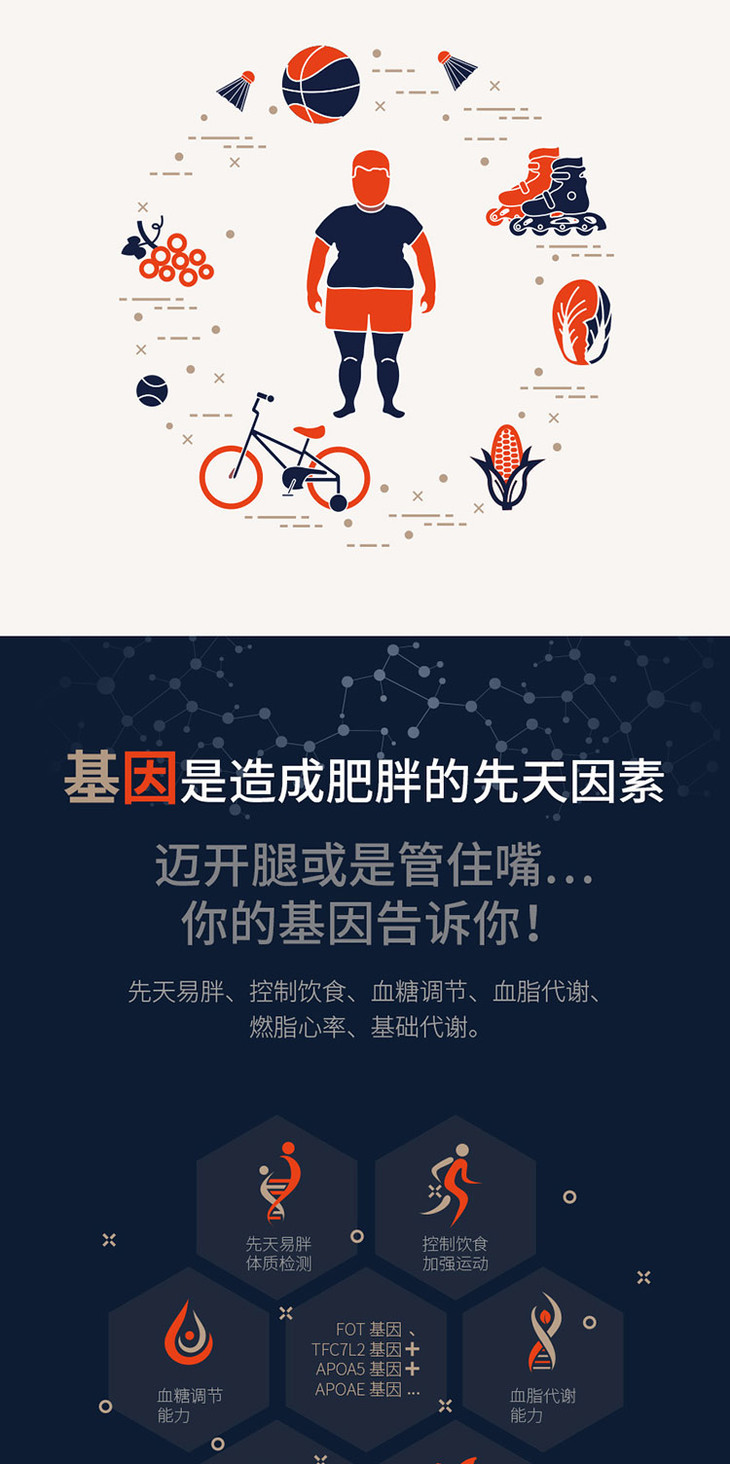 与其发愁怎么瘦,不如先探索自己胖的根源是什么!从基因的角度了解自己为什么胖,是否携带肥胖基因,利用基因数据实现精准减肥、科学减肥,才是真正的有效减肥!