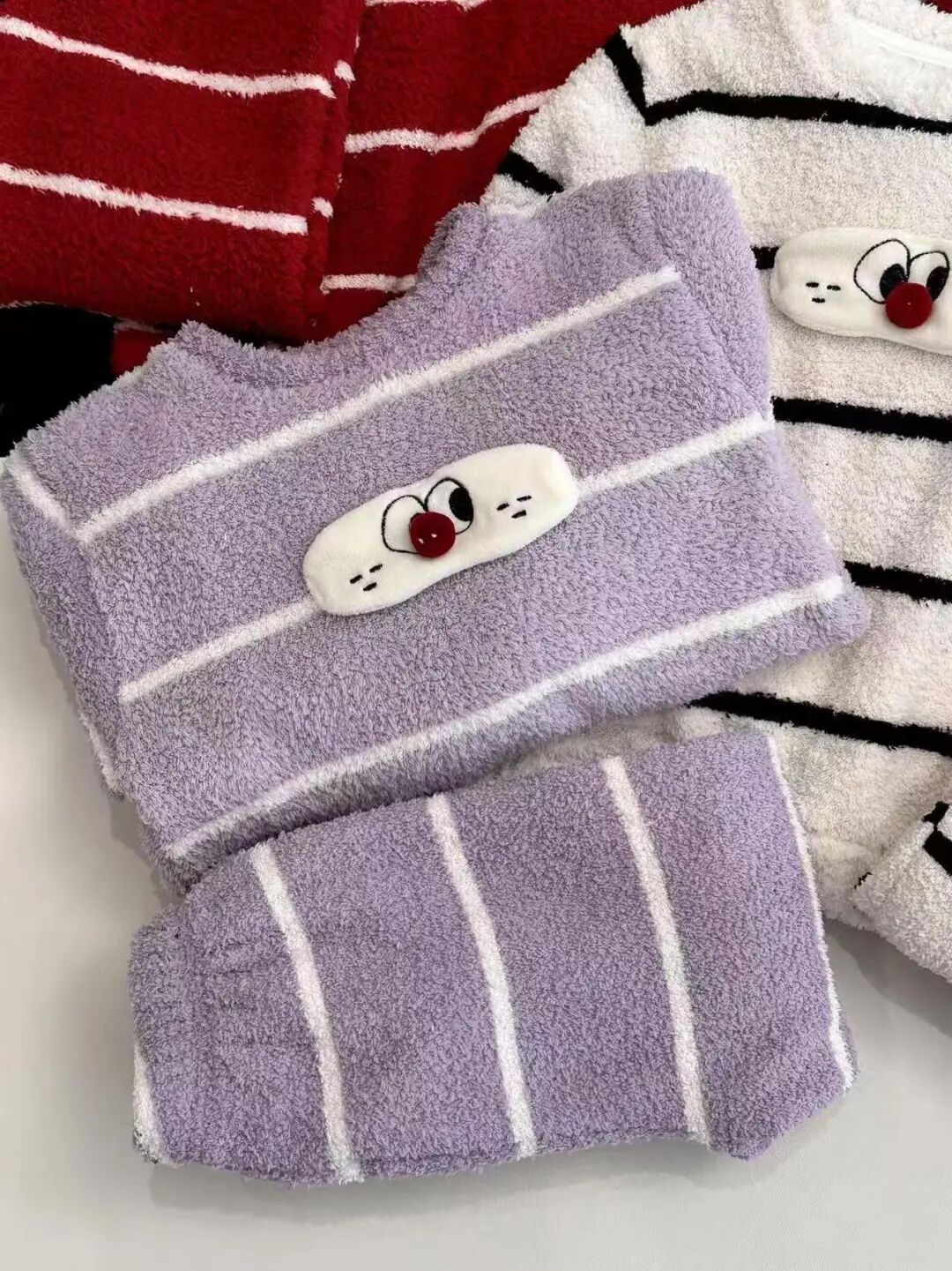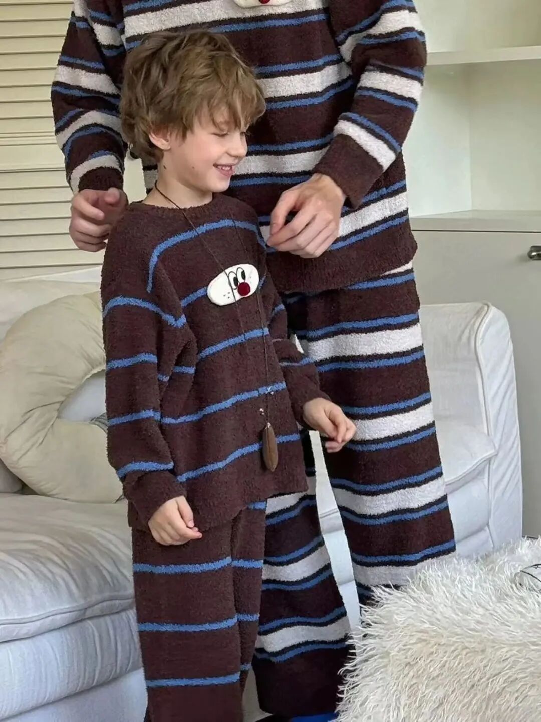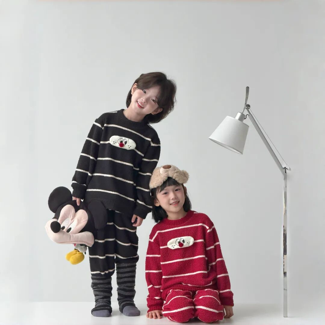 【团品】亲子款条纹半边绒保暖套装