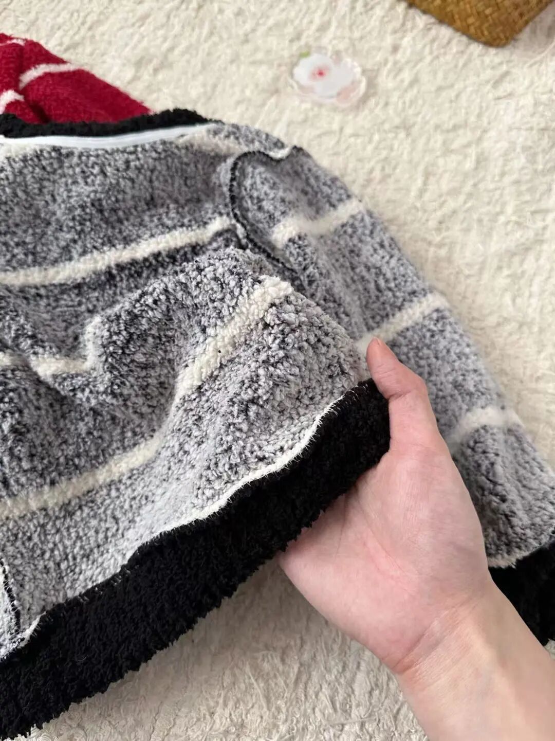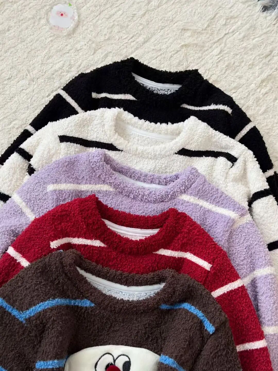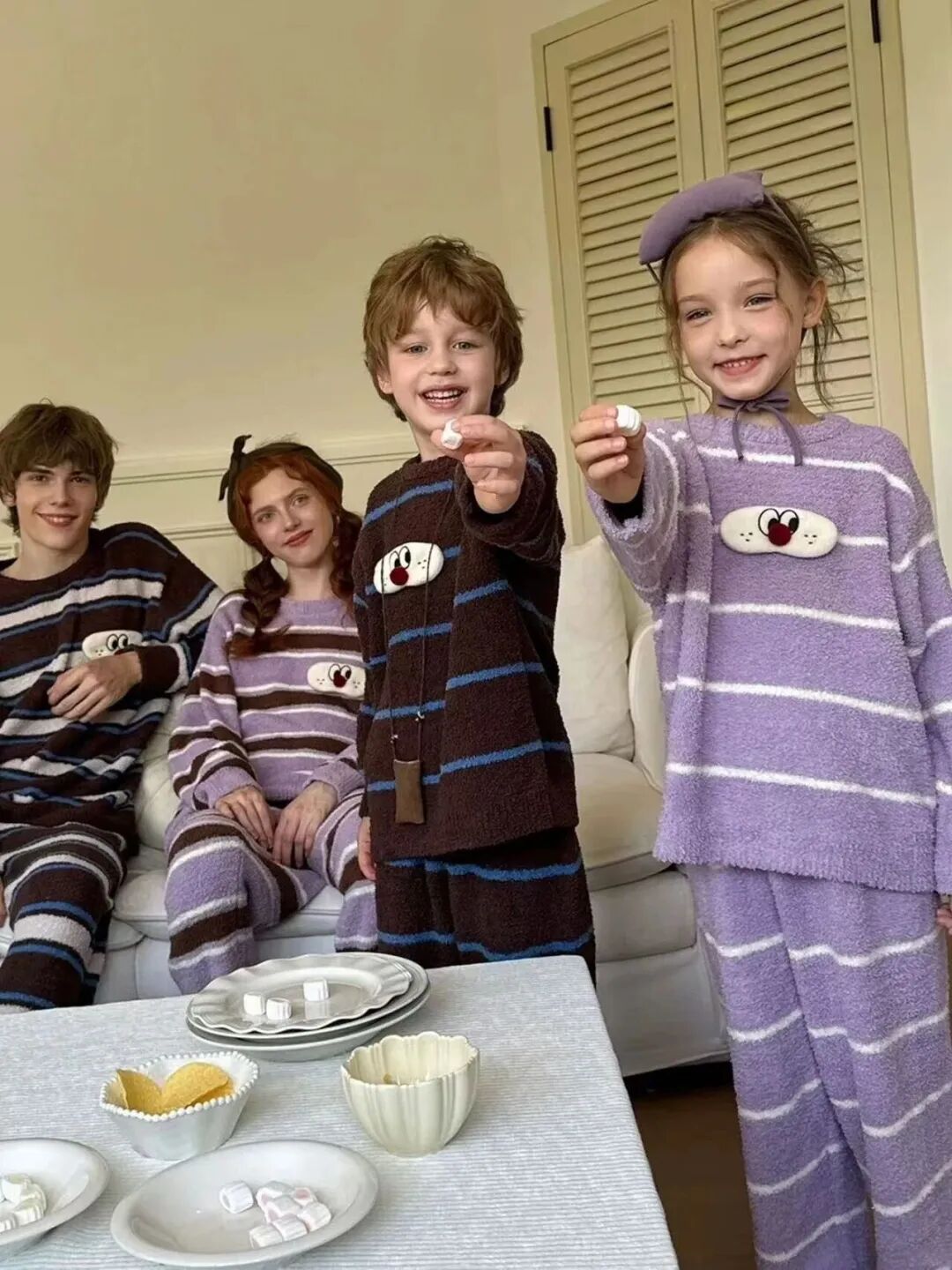 【团品】亲子款条纹半边绒保暖套装