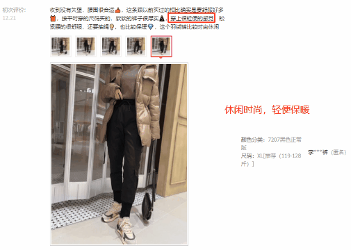 我们特别准备了一条羽绒裤,帮大家验过货了。
