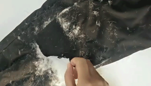白白的、蓬松的羽绒立马涌出,一片雪白,肉眼基本看不到任何杂质。