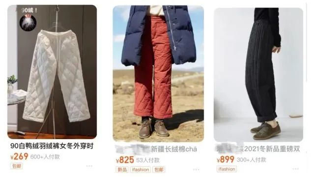 同类型羽绒裤,随手在某宝上一搜,都得250块起步,有的甚至要900元。