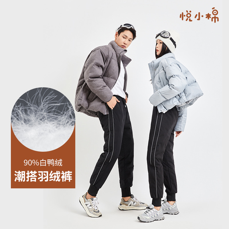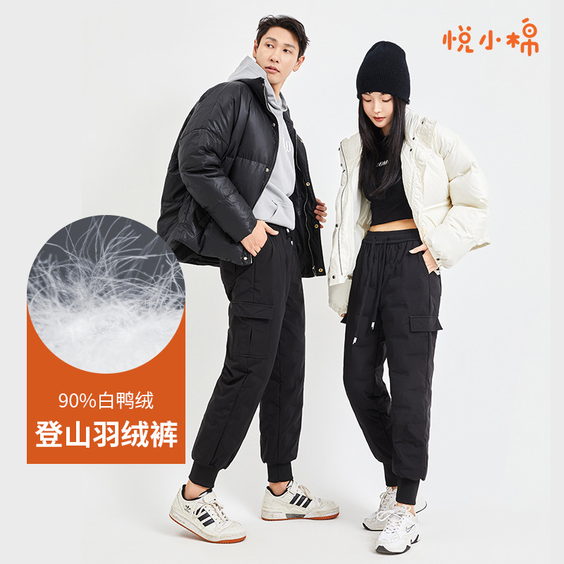 悦小棉羽绒裤特别甄选了天然白鸭绒,含绒量达到了90%,能抵御零下的天气。