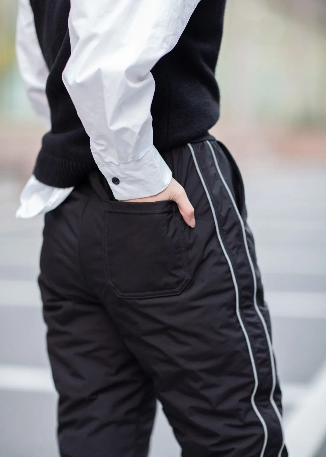冬天最怕洗衣服,这条羽绒裤本身就是耐脏的黑色,还能防污。