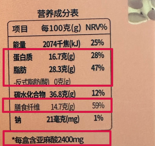 1、添加65%俄罗斯亚麻籽!每盒含2400mg亚麻酸(欧米伽-3),营养丰富,口感香脆!