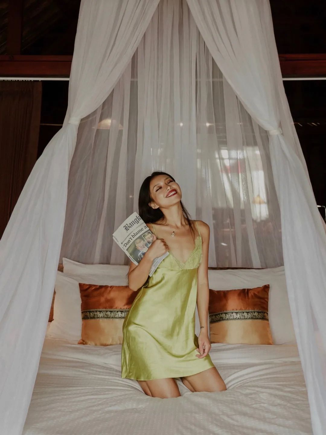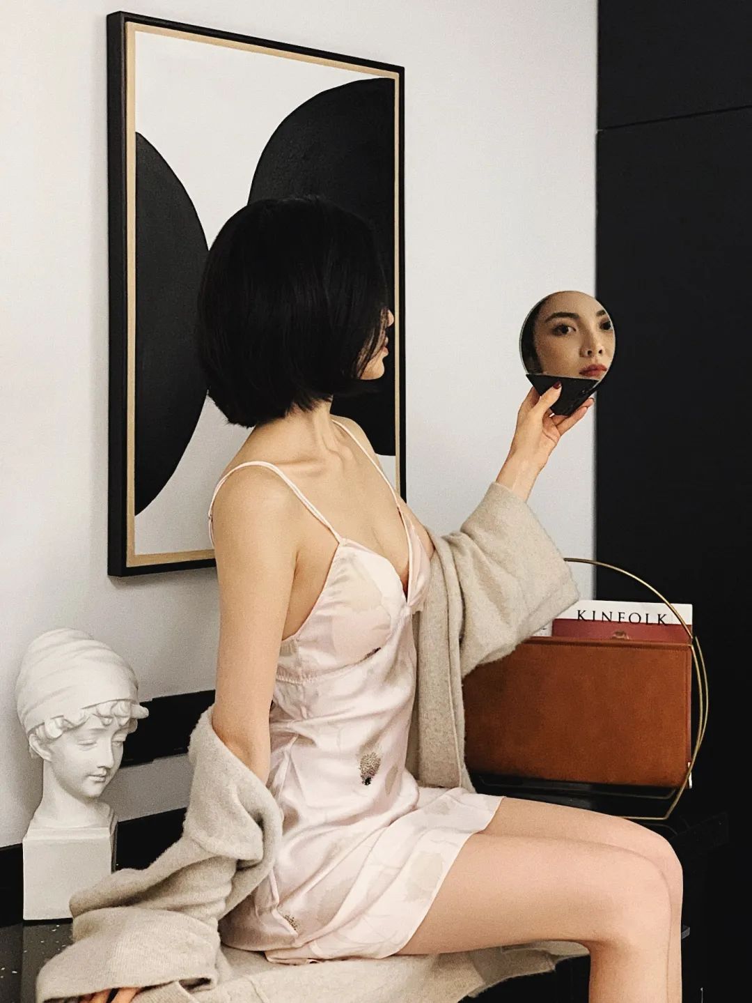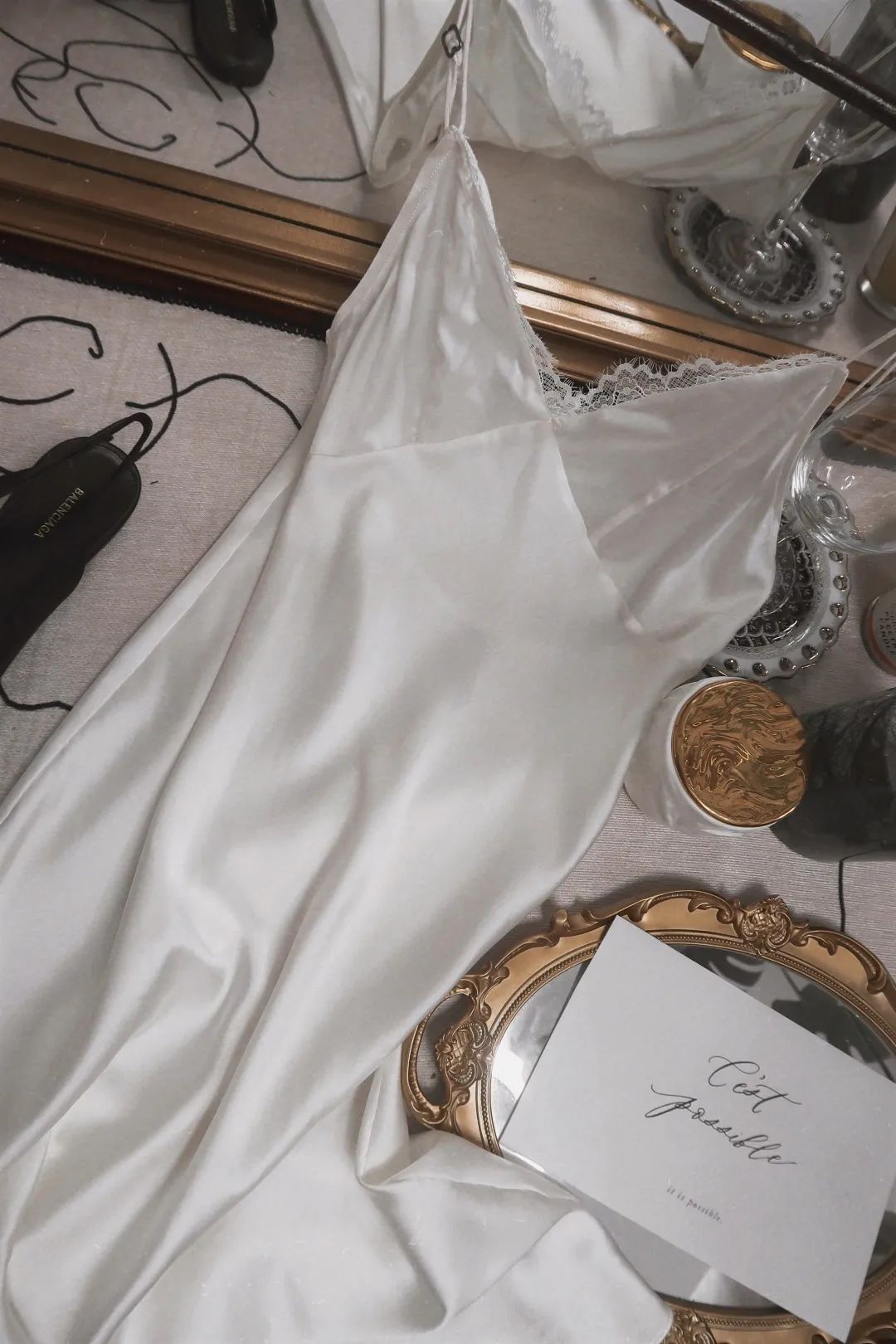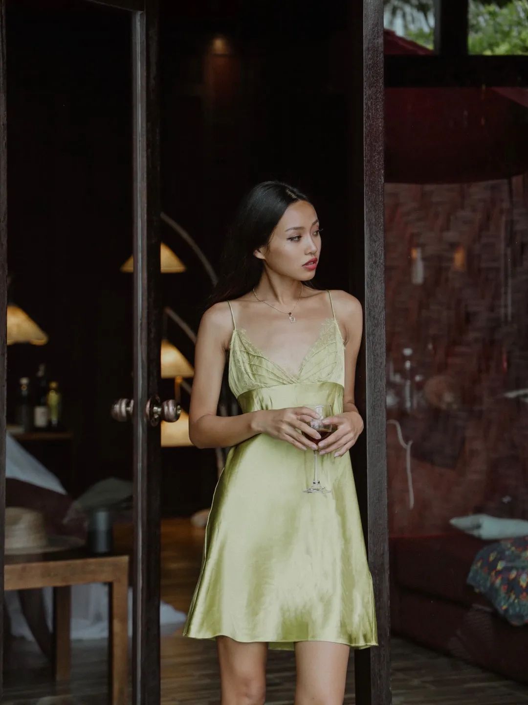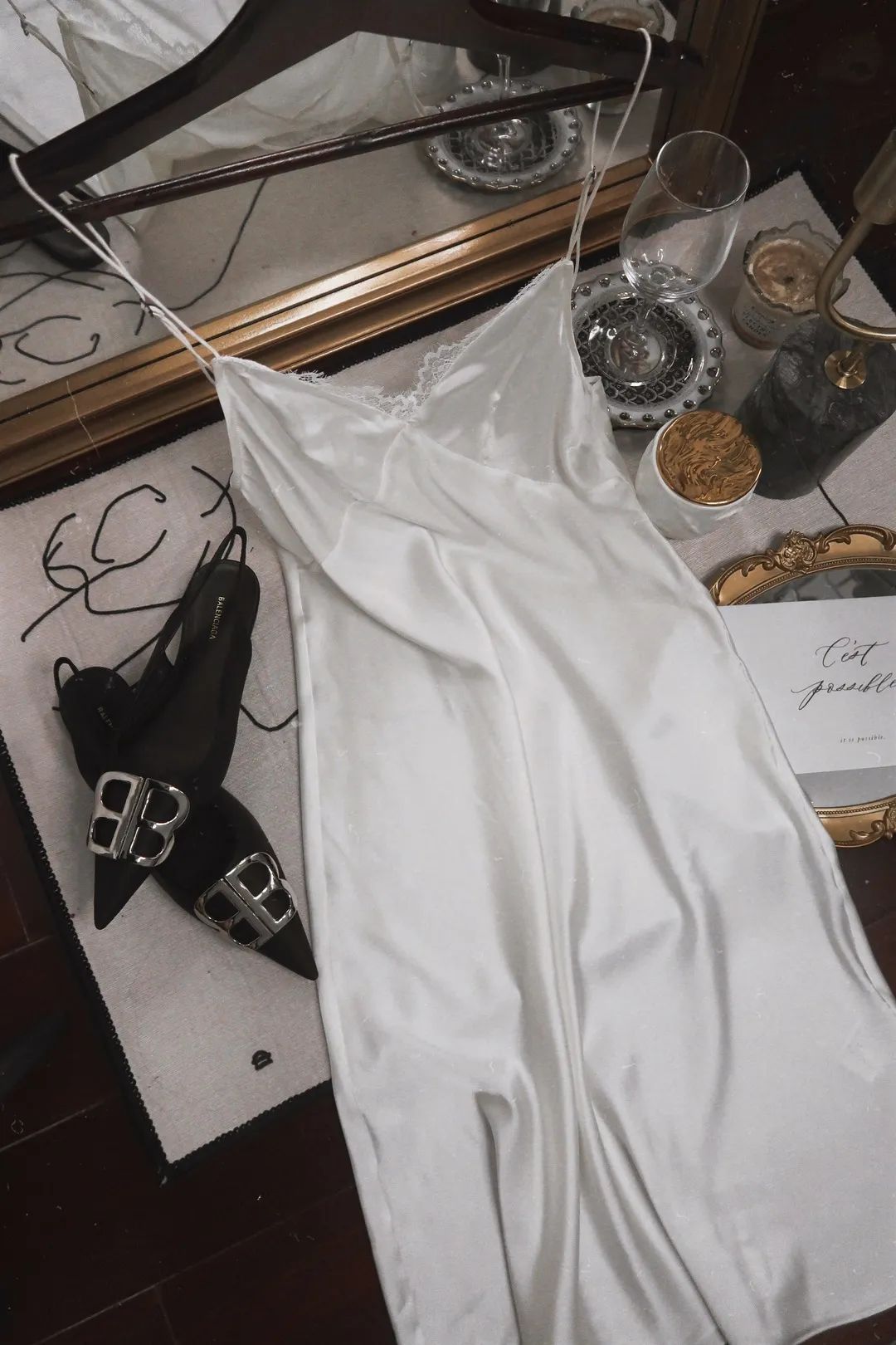斜裁工艺让裙摆呈现小波浪形状,又有一点束腰的效果,虽然贴身但是毫不紧绷。不管是作为睡裙还是内搭,都十分贴合心意。