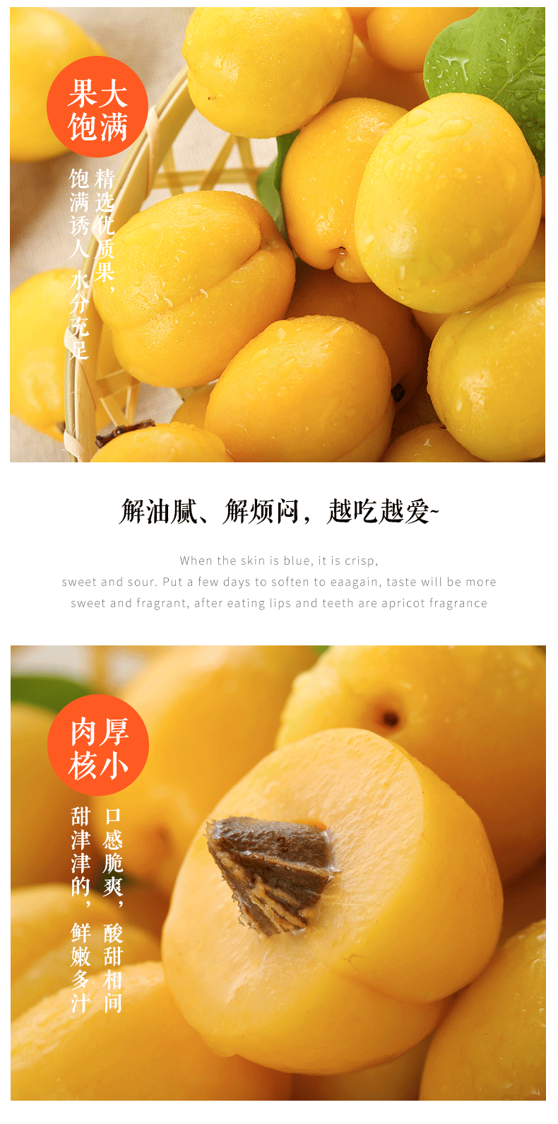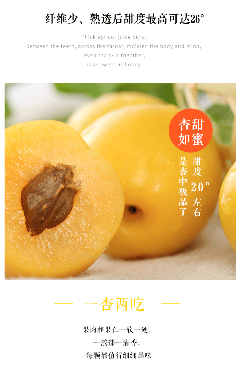 (温馨提示:为便于运输,采摘发货的珍珠杏均在九成熟,若果子过青,请置于阴凉处静置3-5天,待杏果皮澄黄后食用,口感更佳哦!)