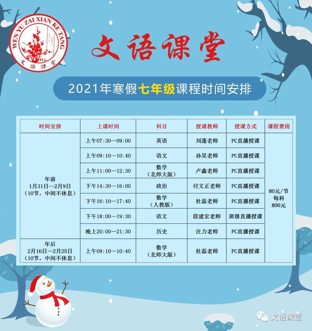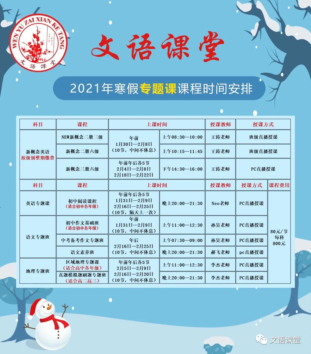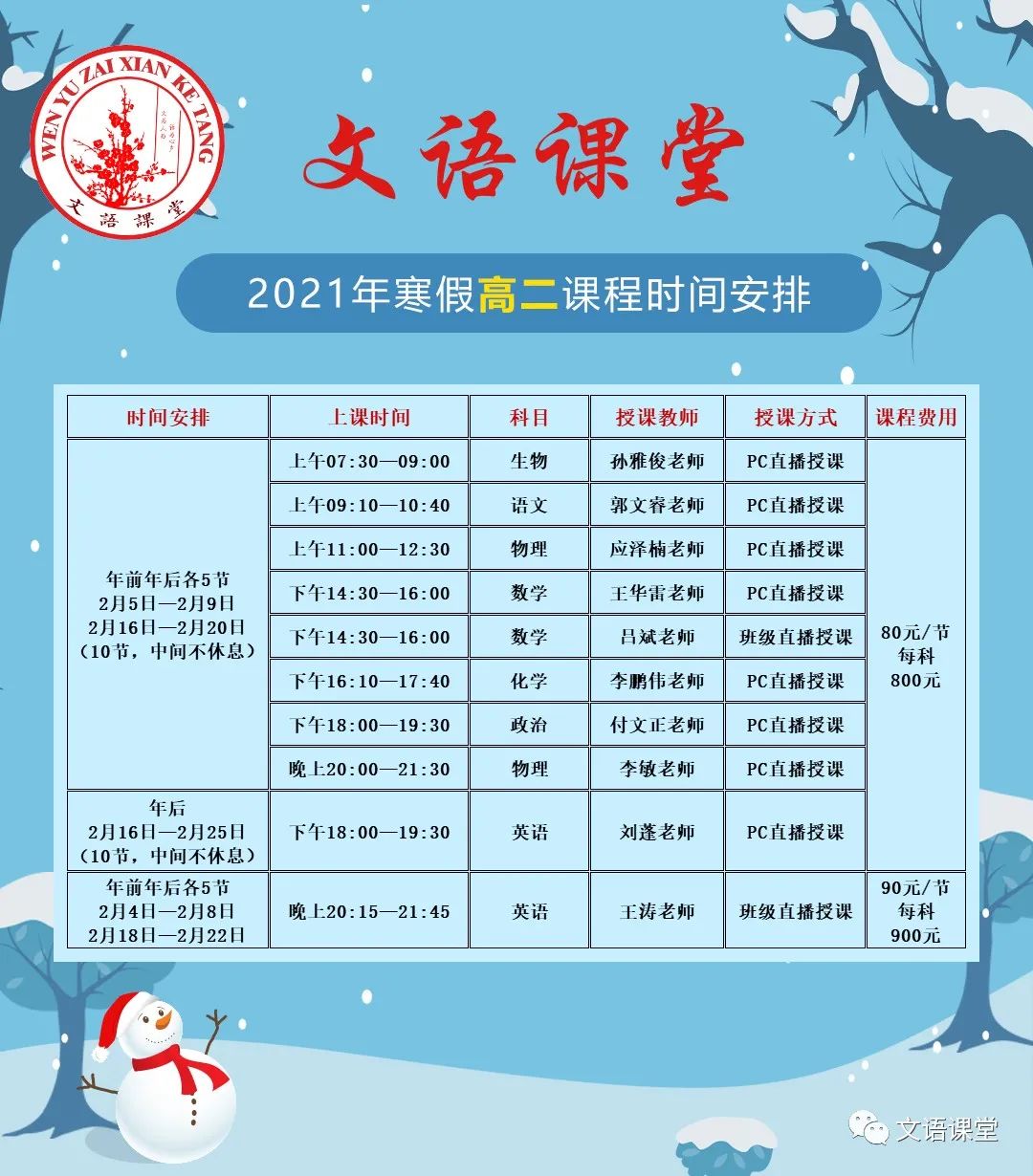 寒假课程开课在即,文语课堂温馨提醒各位学员及家长提前查看课程表,安排好时间,准时上课哦!