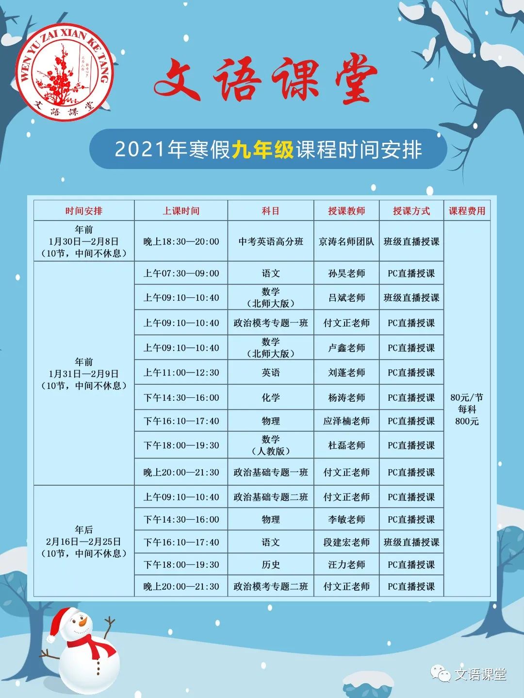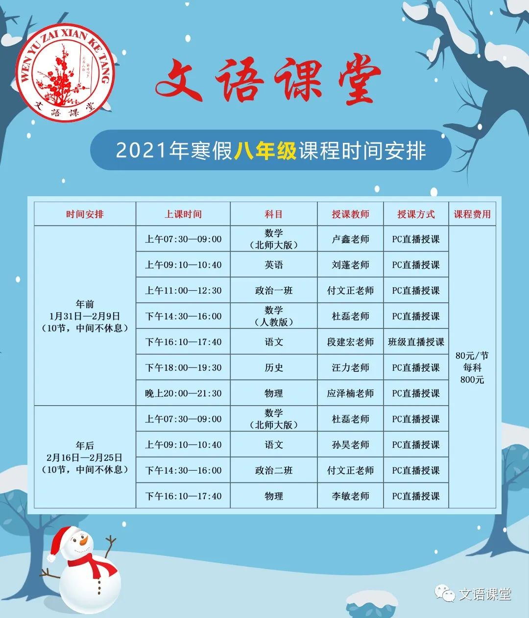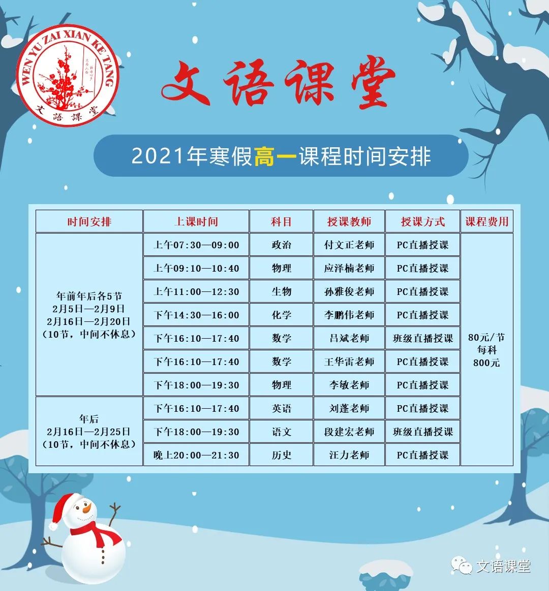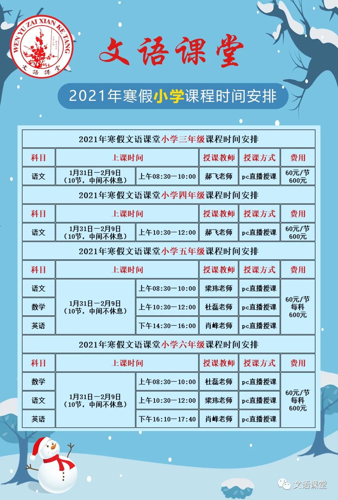 寒假课程开课在即,文语课堂温馨提醒各位学员及家长提前查看课程表,安排好时间,准时上课哦!