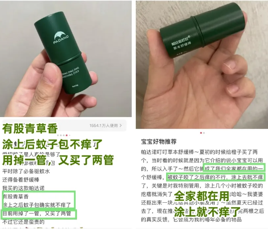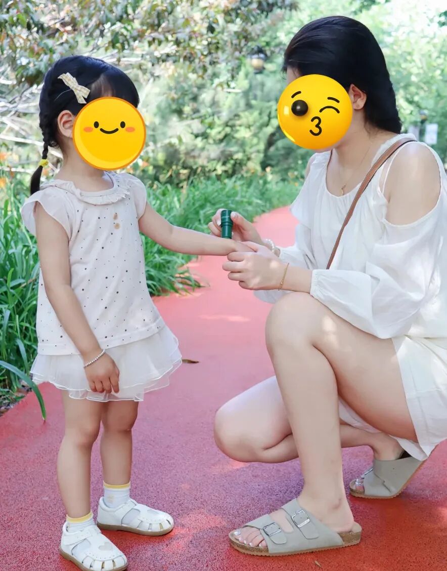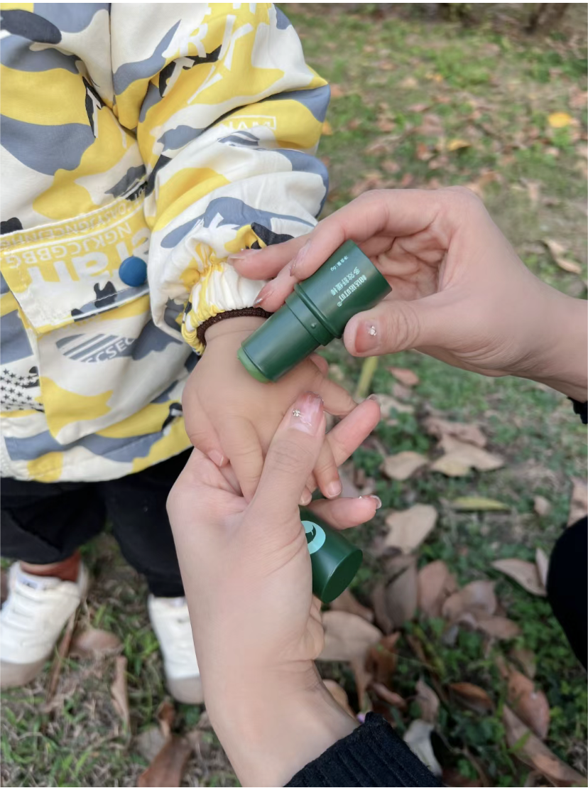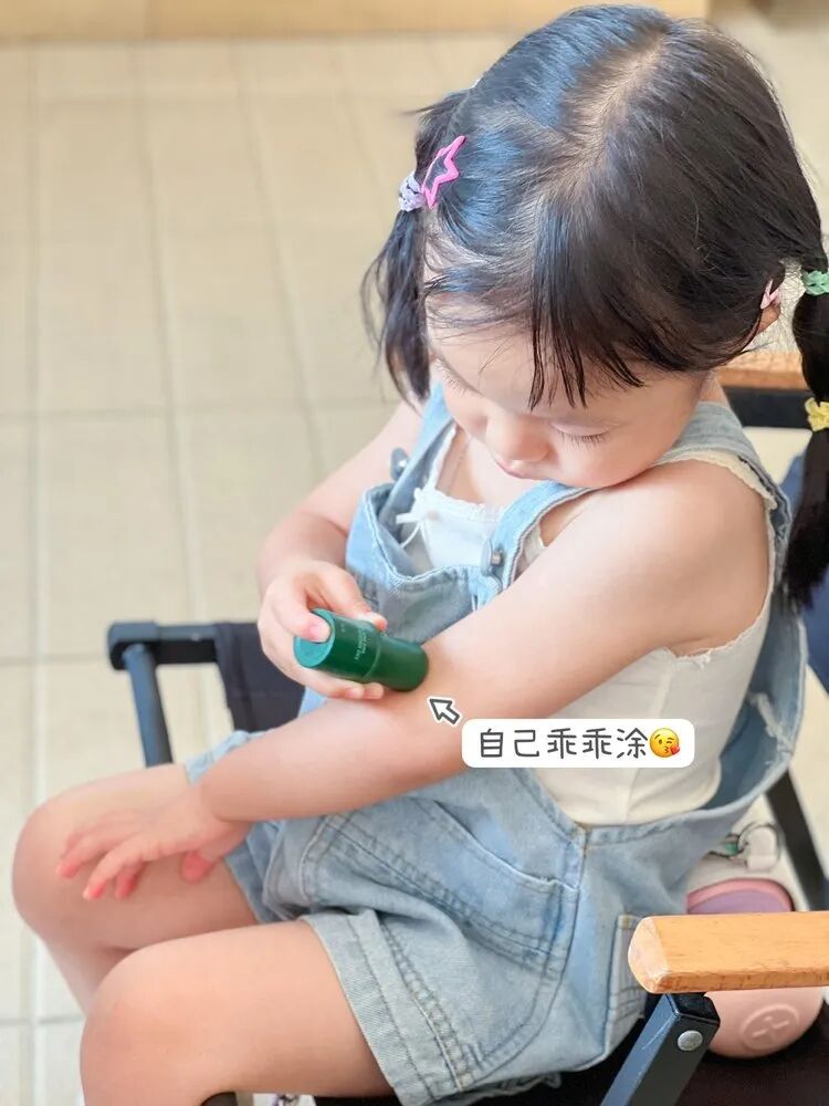也很着急,直到前几天朋友带娃出去露营,两只娃都被咬得嗷嗷叫,她转头从包里掏出一根“小绿棒”,咔咔往两只身上涂。