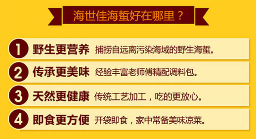 每袋海蜇头都自己带着调料包,随时等着你大展身手,让不会做饭的你,也能成为“凉盘大厨”。