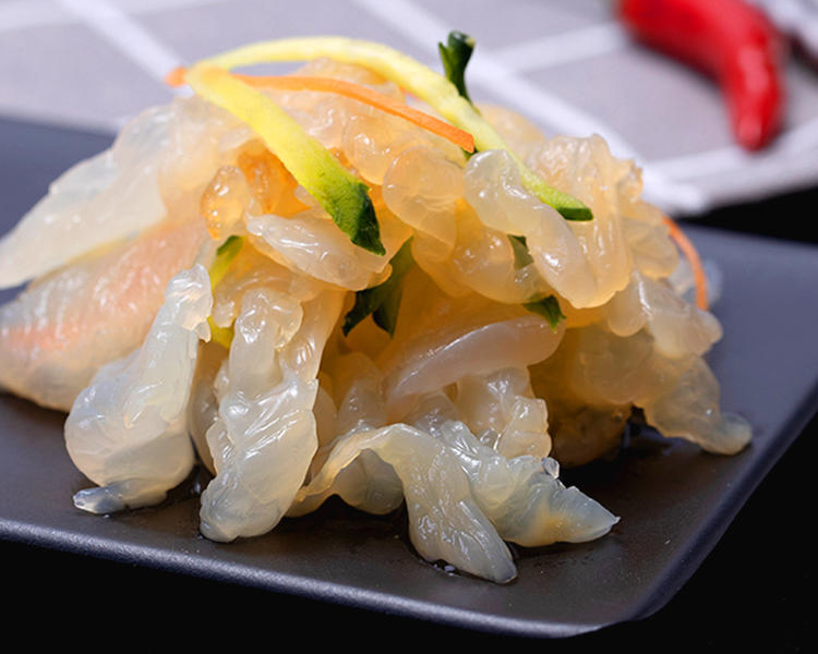 海蜇不仅口感好,还是一种富含营养的水产,它含有人体需要的多种营养成分,而且海蜇的脂肪含量极低,也特别适合怕长肉肉的朋友。