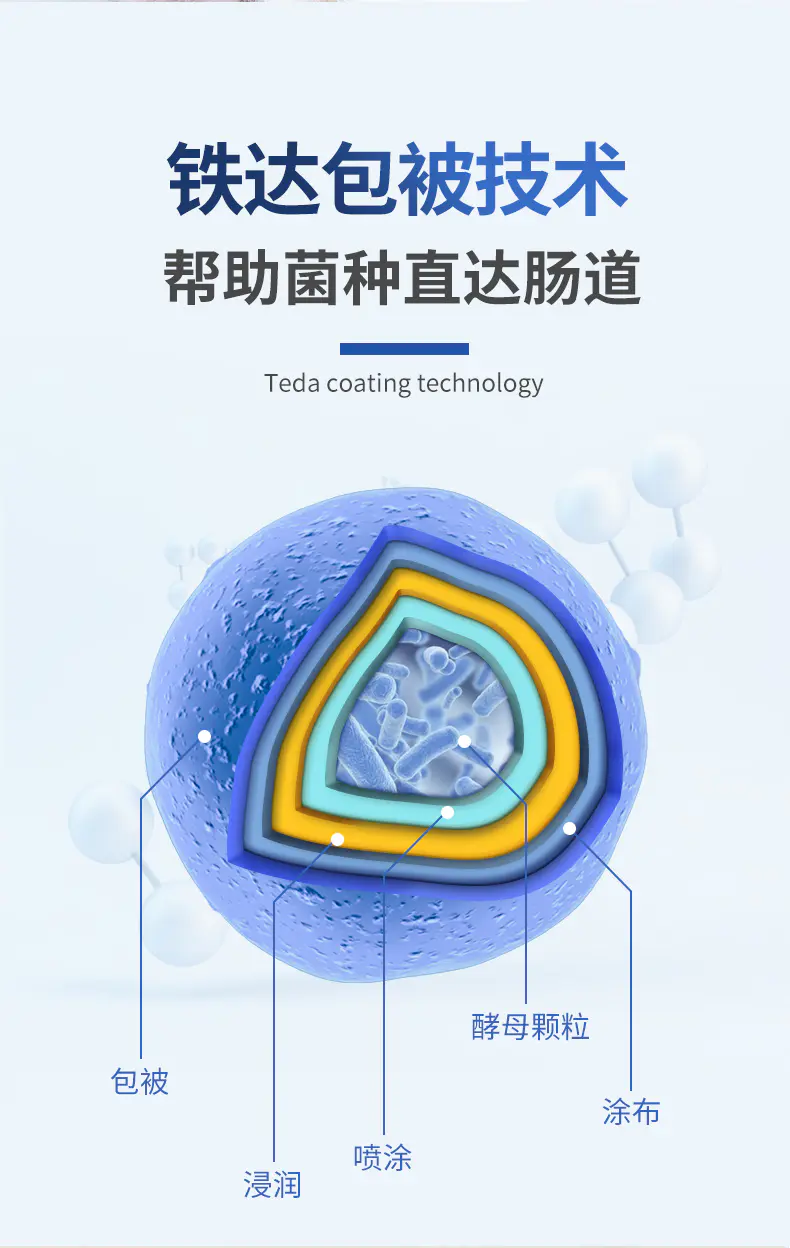 法国进口布拉迪酵母菌,专利铁达包被技术,耐高温、耐胃酸,50亿CFU高活性益生菌,可与抗生素同时使用。