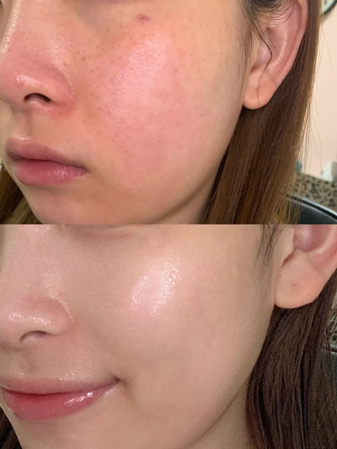 后来内测时,她才用了2片面膜,面部红血丝明显减少,皮肤也变的很水润,也没在出现干痒的情况。就连熬夜瑕疵都不见了,修护效果真的很惊喜。