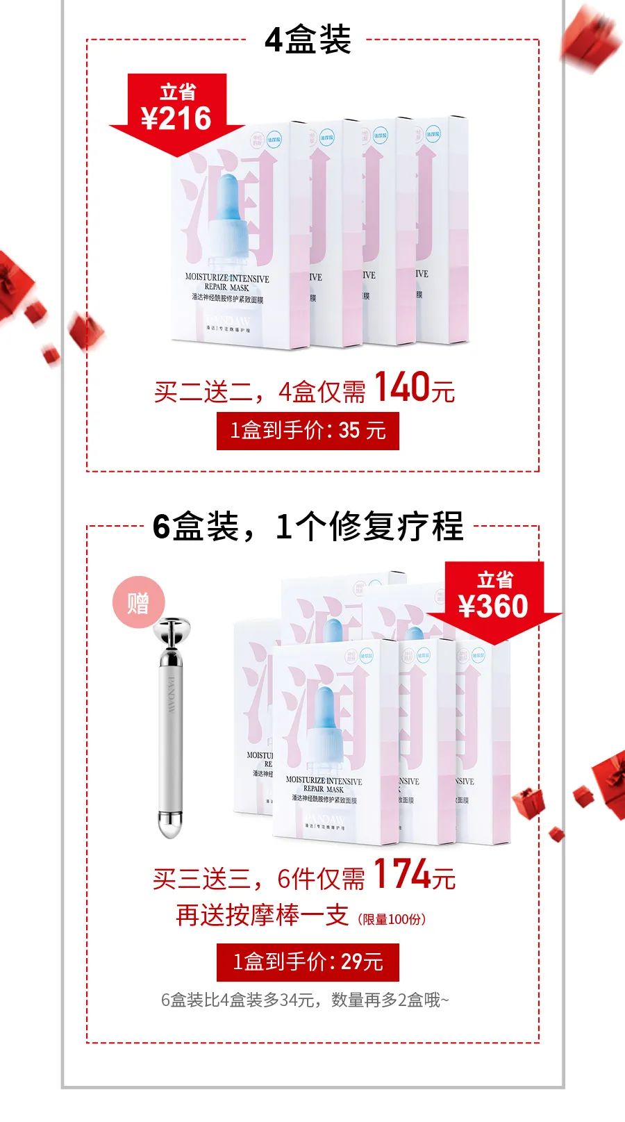 而且,6盒一个修复疗程,方便肌肤观察,一个人也可以用的完。此外,你也可以跟同事、闺蜜拼单,现在活动超级合算💰~