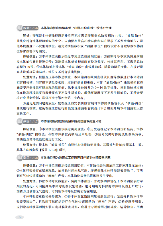本书主要涉及电力变压器运行中常见的异常、缺陷及故障三个维度: