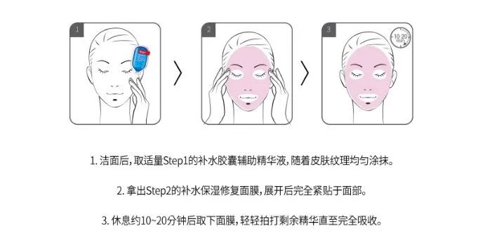 涂好精华再敷面膜,这一步就可以解决肌肤干渴问题,形成皮肤保湿膜,因为其富含的阿尔卑斯冰山水成分含有大量的天然矿物质,相比其他水更易迅速吸收。还可以在保湿锁水的同时调节肌肤的水油平衡,提亮滋润肌肤,更有利于在肌肤表层形成锁水保护膜。
