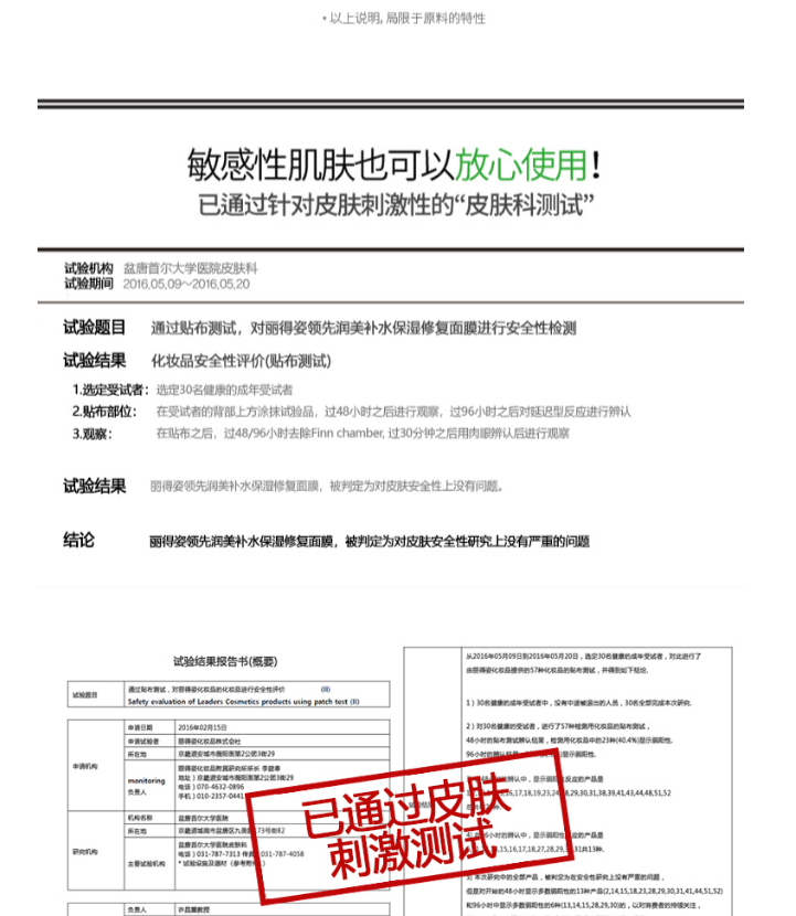 而且通过了安全测试,敏感肌肤也可以放心使用哦~