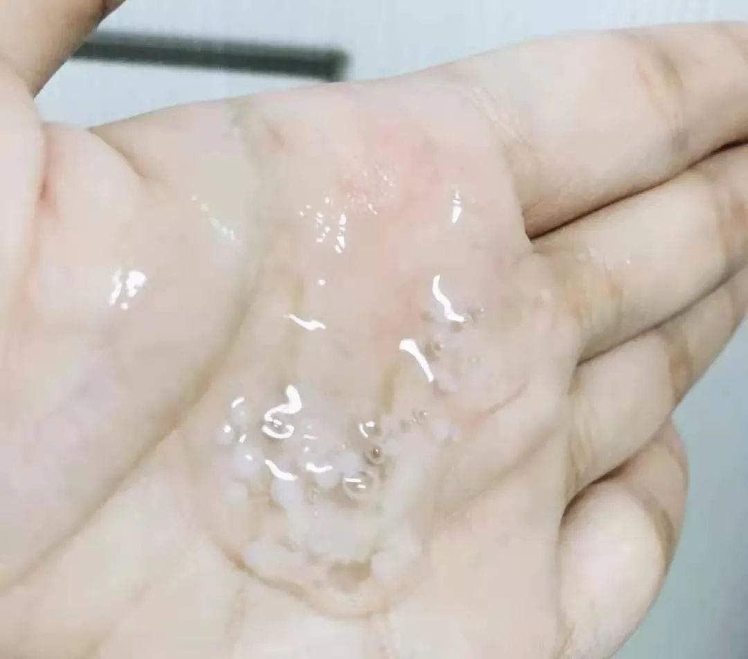 打开这个精华能看到质地比较浓稠,但并不会觉得厚重油腻。里面有白色的小点点,很像吸的果冻里面的那种,但是一上手就化掉啦~