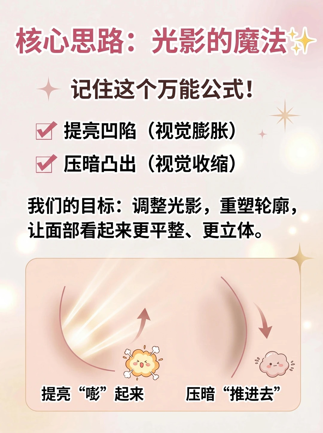 利用光影魔法,在视觉上把凸出的地方“收”回来,把凹陷的地方“填”起来,下半张脸立马变精致!