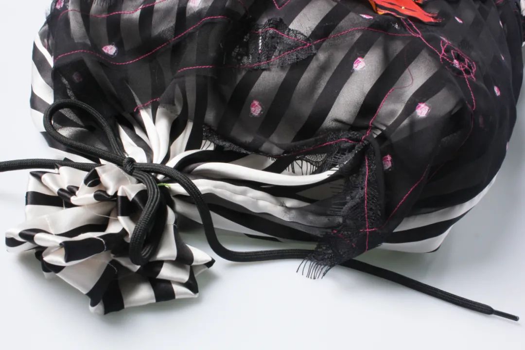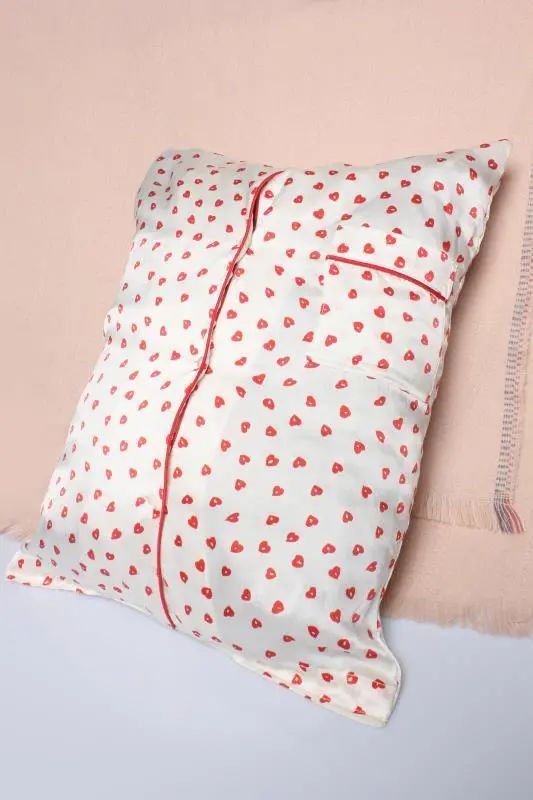 白底红色桃心的真丝面料,图案大方复古,材质丝滑舒适。如果就这么报废了当然是很可惜的,所以就有了我们下面看到的“重塑新品”。