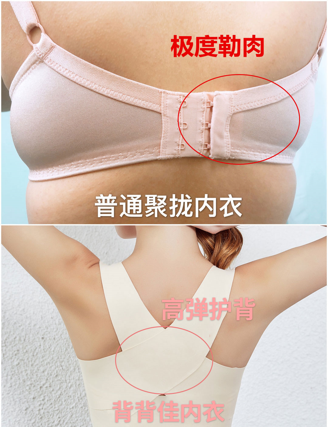 科学的版型设计,背背佳+聚拢内衣的双重塑形效果,轻轻一扣,立马拥有迷人体态!