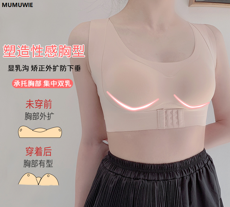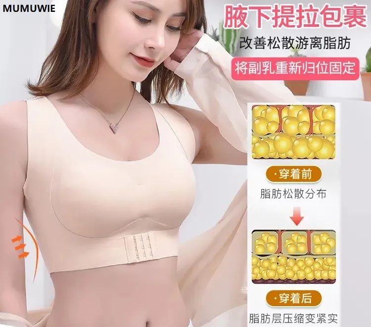 很多女性除了胸部下垂、外扩,还存在副乳问题,夏天穿无袖或者露肩的衣服真的很难看!MUMUWIE内衣还能有效收藏副乳!