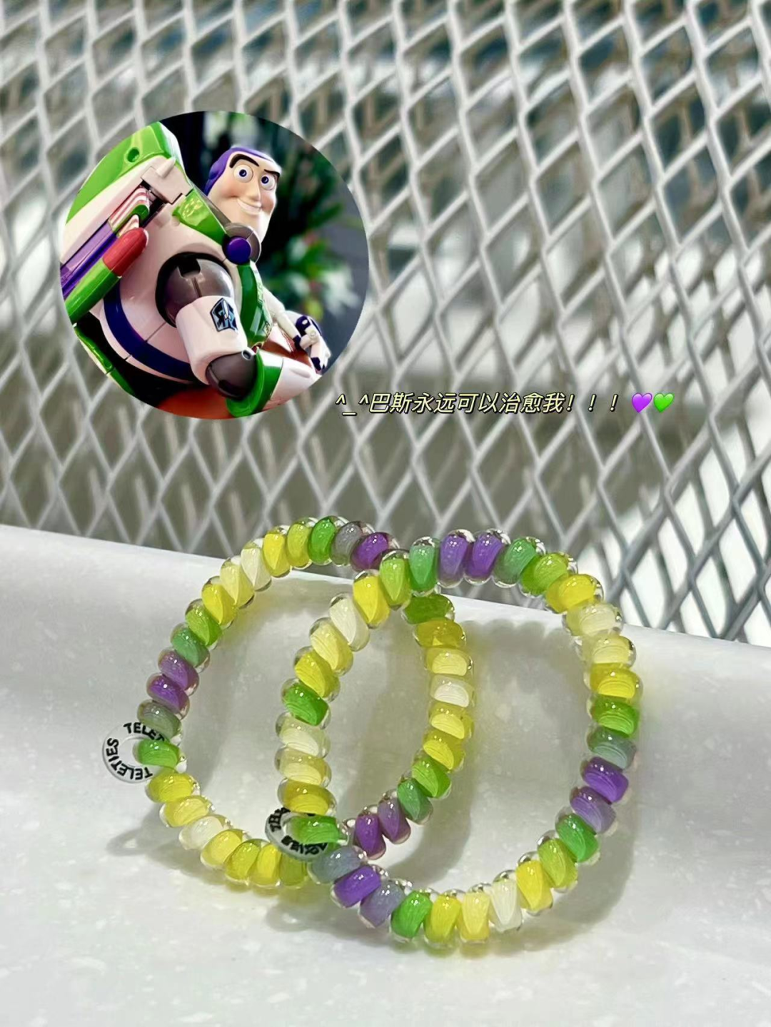 之前夏季新款第一波的巴斯光年绿,这绿黄紫的配色,我是秒入,然后和我之前买的彩虹款搭配着做手,真的好看死了