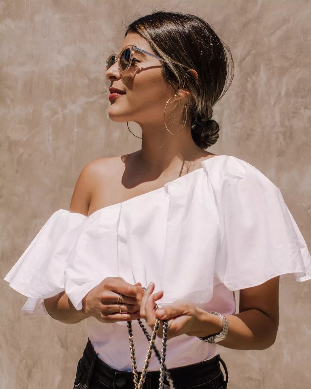 当你想塑造一个干练的Career Woman的人设时,利用5秒钟将长发一卷,会呈现与散发完全不同的风格。