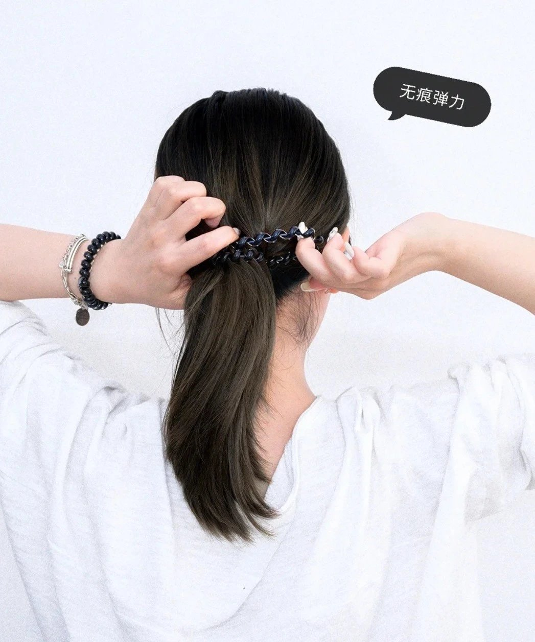 明星私服都爱搭的多功能发箍叠带在手上的组合真的和手链一样!!集颜值和实用于一身的Teleties发圈了。发箍款不仅能绑头发 还能固定头发当发箍使用。就连雨神萧敬腾都爱不释手🤗固定头发的同时也不担心勒头发,本秃头星人很难不爱不伤头发的发圈了对于姑娘们来说,除了能穿好看的新衣服之外,做一个精致又时髦的发型,也是出门的仪式感之一。于是,各种美观又实用的发饰就成为了爱美女孩必不可少的饰品。无论是前几年火遍全网的大肠发圈、抓发夹,还是今年大走特走复古风的电话圈,可见黑色头绳绑起马尾辫这样的常规操作,早已不能满足姑娘们追求时尚的心~像我就一直觉得,发圈这个东西吧,属于特别容易被人忽视的一件时髦单品。虽然说散着头发让发丝随风盈动飞扬的样子会更突显女人味,但一成不变的造型看久了还是会感觉无聊。而要说哪些发型,既能满足我们不同场合需求,又能优雅露出天鹅颈,那就不得不提及马尾和丸子头。相较于编发那样繁琐复杂,马尾和丸子头一定是妹子们公认最容易上手扎发造型,同时又因为不同手法和衣着搭配,分分钟创造出不同的FEEL!随意抓两下,把所有头发束成一个高马尾,是提升干净度和利落度的首选style。卫衣、毛衣、运动装尤其适合高马尾,青春洋溢又元气满满,减龄感这不就来了么~可能有的姑娘会说:我发量不多,扎马尾不好看怎么办?又或者是脸型不适合全露...不用急,大茉莉来教你两招:头发细、软、少,卷发作为“少毛星人”的必修课之一,用电棒稍稍把发尾夹卷,立马就能营造出你想要的那种厚重大发量的既视感。如果你的脸型本来就不差,甚至是那种小巧精致的巴掌脸,那我简直羡慕死你。像欧阳娜娜这样,把高马尾梳得整齐干净,更能突显下颚线,提升五官的深邃度,微卷的发梢还能给你带来少女的活泼感。齐肩发,或者是脸型过于圆润的姑娘,担心扎马尾不好看?可以尝试在扎头发的时候,把鬓角、发际线这些地方抽出一些小碎发,不仅可以避免梳的太干净显老气,还能弱化脸部的肉感,打造出一种“若有似无”的线条,慵懒的风格非常适合日常。