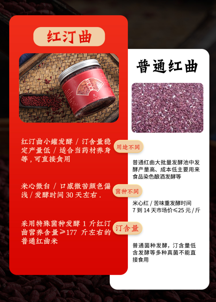 无论是从发酵工艺、发酵时间,红汀曲·古田高汀红曲米都更花费更多精力,高成本和漫长的等待,只为了制作出营养更均衡的红曲米!