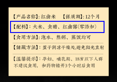 一般情况下,红曲米在达到预期的发酵程度后,会用醋进行“灭菌”,普通红曲米一般采用醋精,而红汀曲·古田高汀红曲米选用的是天然酿造食醋,更放心。