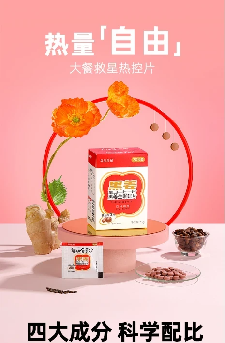 餐后10-30min内1袋黑姜生咖啡片,拿捏好身材!