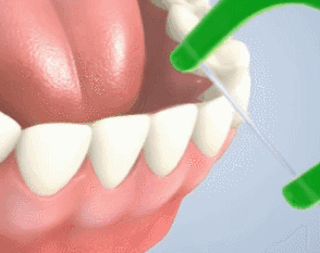 如下图所示:使用牙线时,把牙线放入需要清洁的牙间隙内,分别贴着两侧牙面向上提拉,重复2-3次,便可把食物残渣去净,把牙齿邻面清洁干净,注意不要使用暴力,避免损伤牙龈。