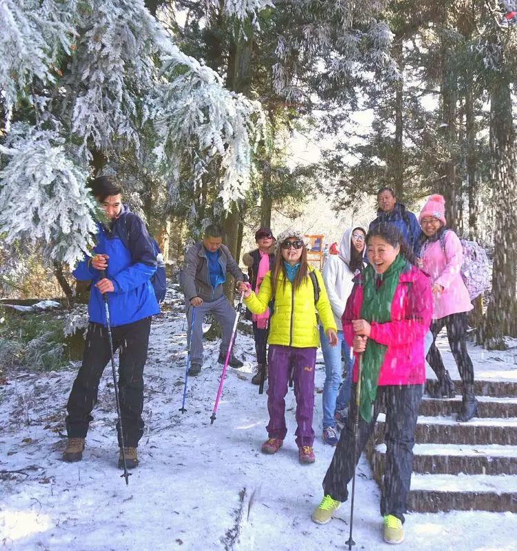 江西属于老区,老区人民的传统习俗,元宵当天得在家团聚。元宵一过,江西驴窝一行19人,从丰城,乐平,景德镇三地出发,便自驾向庐山挺进,上午10点到达登山点___太乙村,与领队在大巴上挂鱼回合后,便向含鄱口徒步前行,中午12时登上含鄱口,徒步看雪景3小时,下午5时原路返回登山点。
