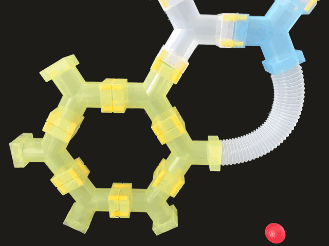 软管、小球、连接杆,想要玩法更丰富,就要组合更多样的材料,使用更复杂的拼接方法。