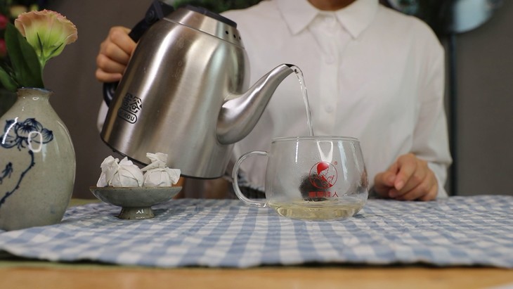 准备好干净的飘逸杯;剥去小龙珠绵纸;将龙珠放入杯子中;注入水,静置20秒左右;润一次茶,即第一遍的茶汤倒掉不喝;接着注入热水,有茶质溢出即可品饮。