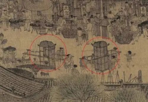 清明上河图中骑马、骑驴的人比坐轿子的人要多上不少。宋人出行习惯于骑马,这不仅仅是因为租马很便宜很便捷,更是因为北宋的人认为,“以人代畜“是对轿夫人格的侮辱,他们不容许自己把别人当作牲口来使用,从而侮辱别人的尊严(当然朝廷上的官员除外)这也体现出宋人的价值观更富于人道主义精神。