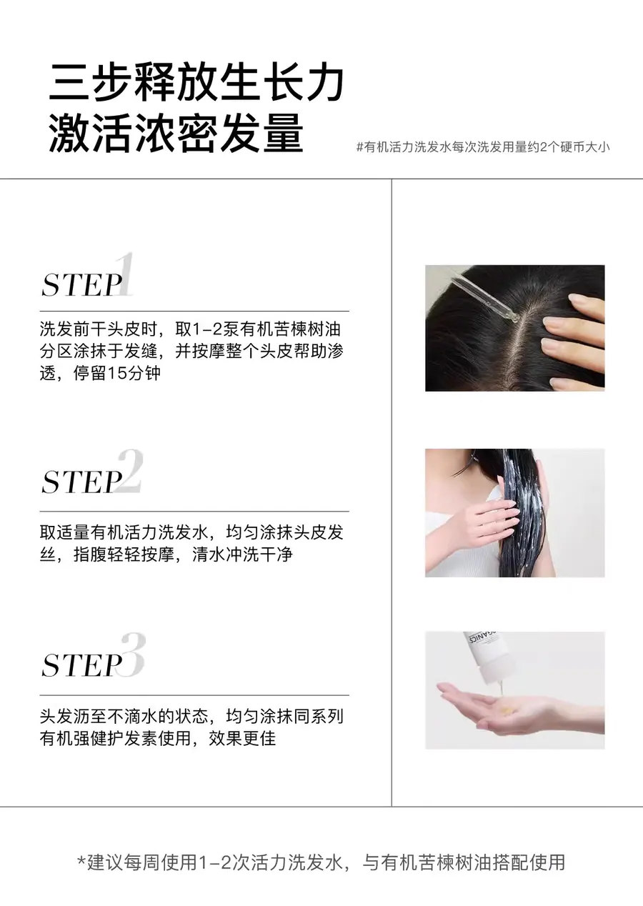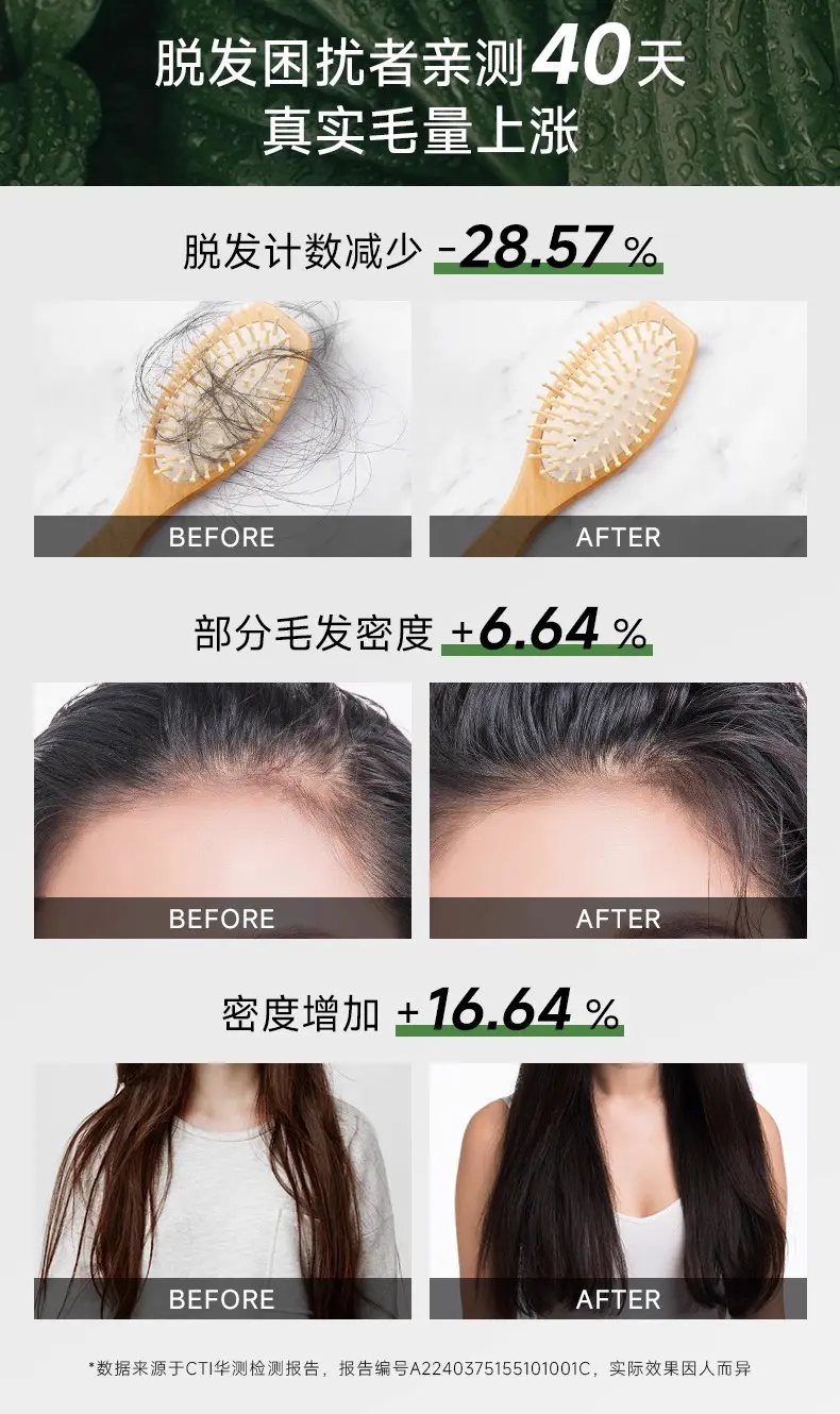 活力洗发水:更精细化照顾女性脱发。成分:白卡皮称为植物界的米诺地尔。