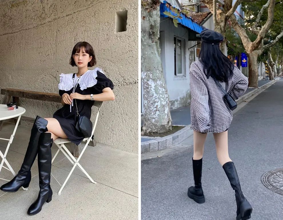 喜欢短裙、短裤的妹子,也可以脚蹬一双长筒靴,酷飒中不失温柔的一面。