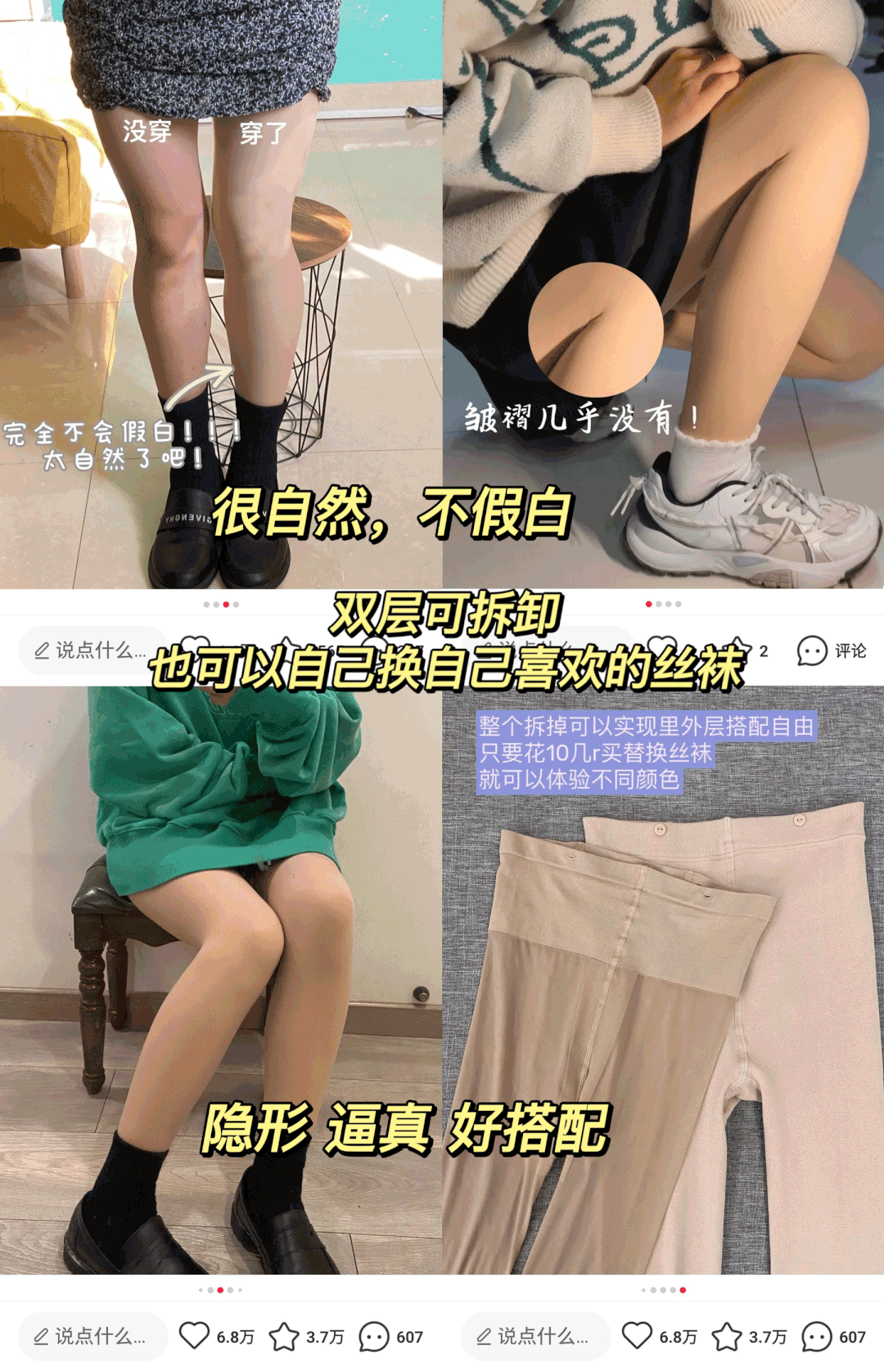 以往我们选厚一点的打底袜,穿上之后假得要命,不如不穿。