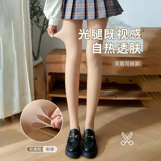 这款双层可拆卸光腿神器,穿上之后,颜色均匀,有着细腻的肌理感,仿佛就和自己的腿一样,裸肌感十足!