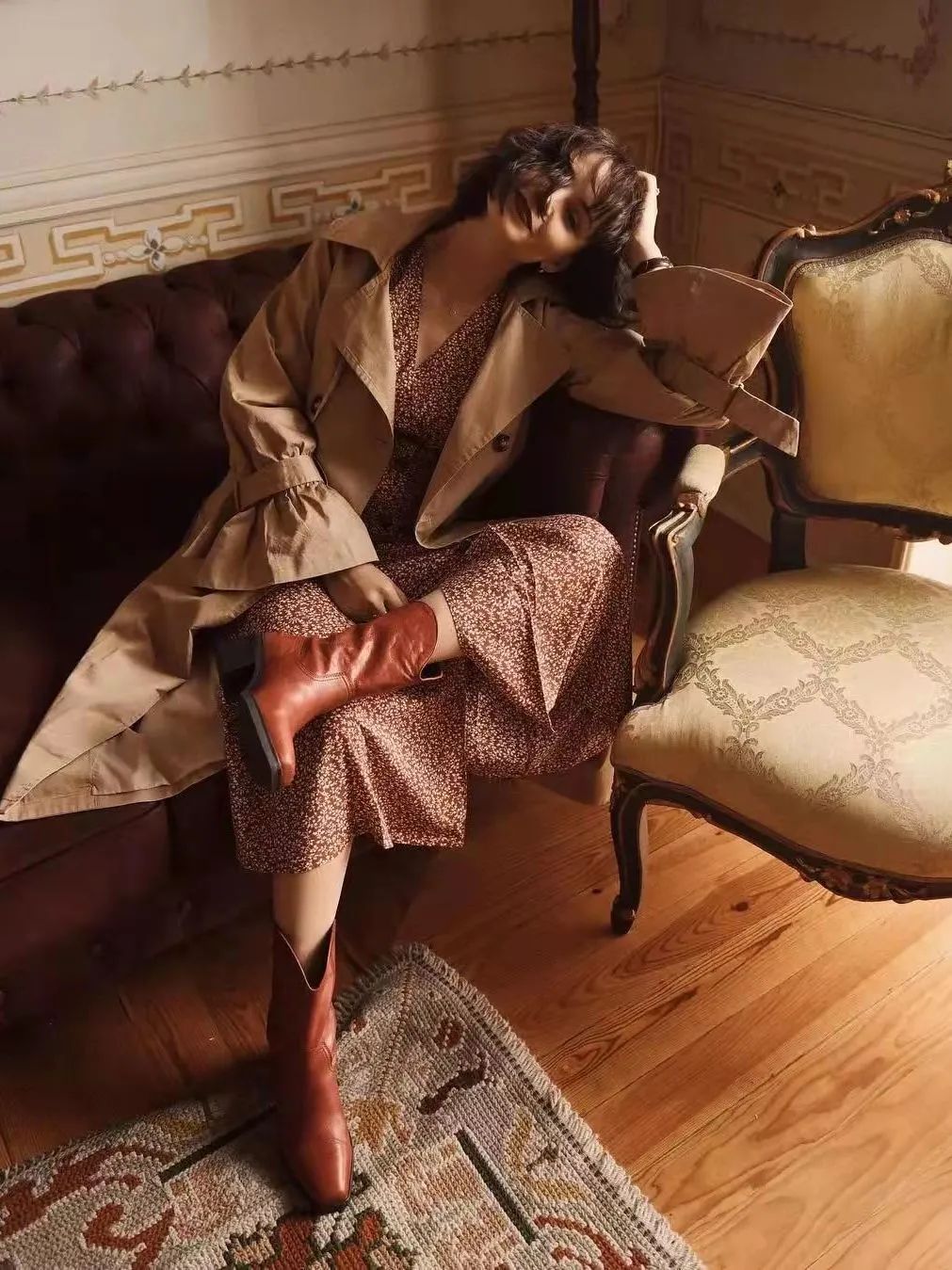 搭配针织半裙、碎花长裙,妥妥地承包你整个秋冬的优雅。