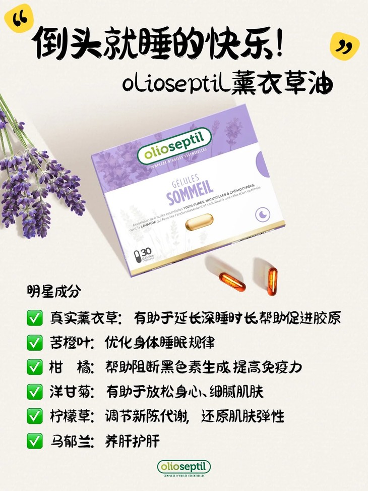 含有真实薰衣草,有助于延长深睡时间,协同复配苦橙叶、柑橘、洋甘菊马郁兰、柠檬草等富含VC的植物成分!
