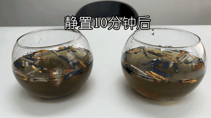 ②随后将等量的烟头,分别倒入两个鱼缸之中;